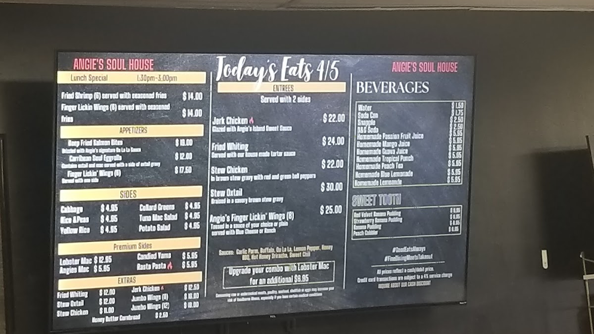 Welcome to Angie's Soul House Menu, where every dish is crafted with care to bring you the comforting flavors of soulful home-cooked meals. Located in the heart of West Babylon, NY, this place is all about bringing people together over hearty, delicious plates. Whether you're craving a juicy, melt-in-your-mouth Southern fried chicken or a rich and flavorful gumbo, there's something here to satisfy every craving. Each dish is thoughtfully prepared using the finest ingredients, ensuring every bite is a taste of love and tradition.